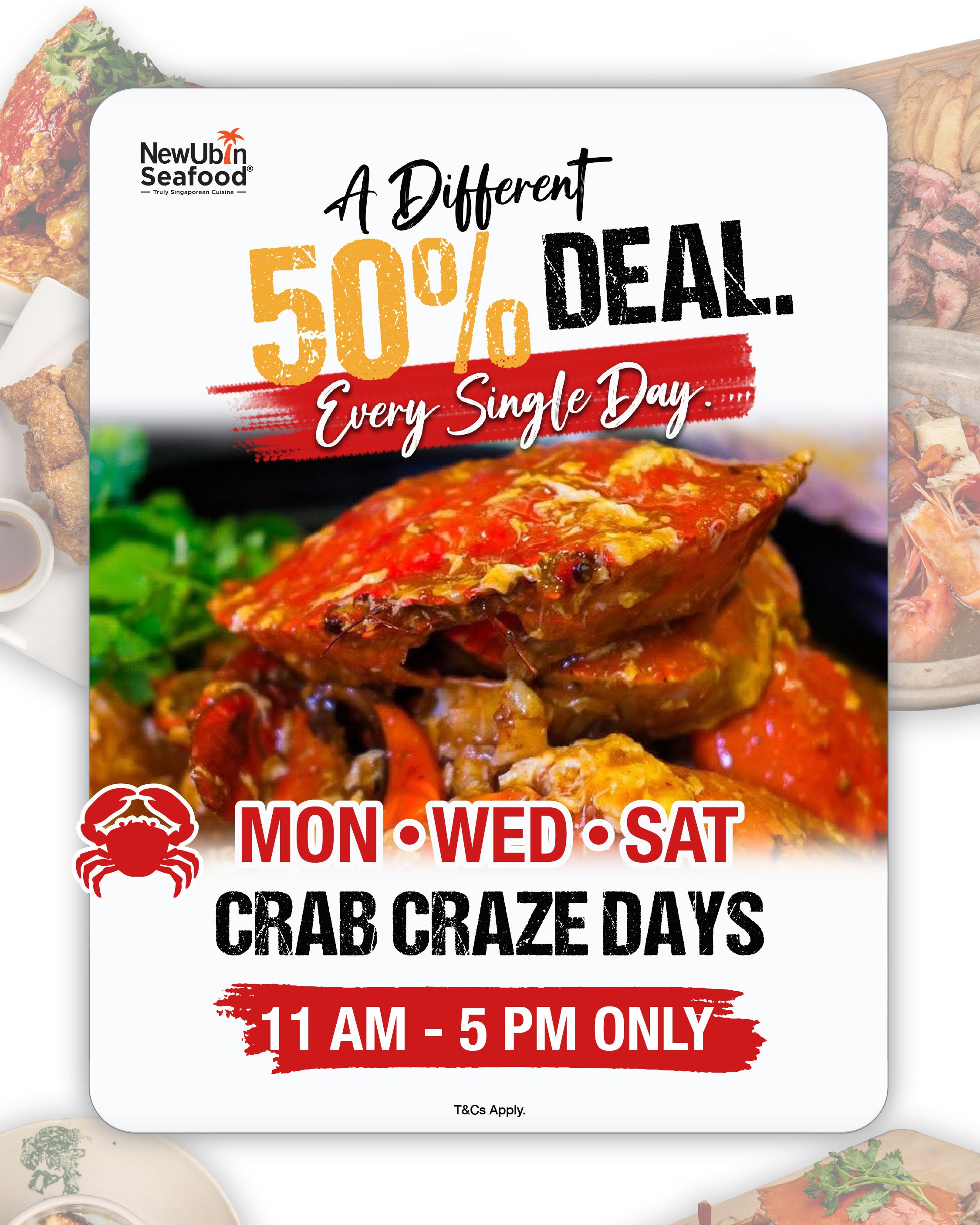 1. 🦀 CRAB CRAZE DAYS (Mondays / Wednesdays / Saturdays)