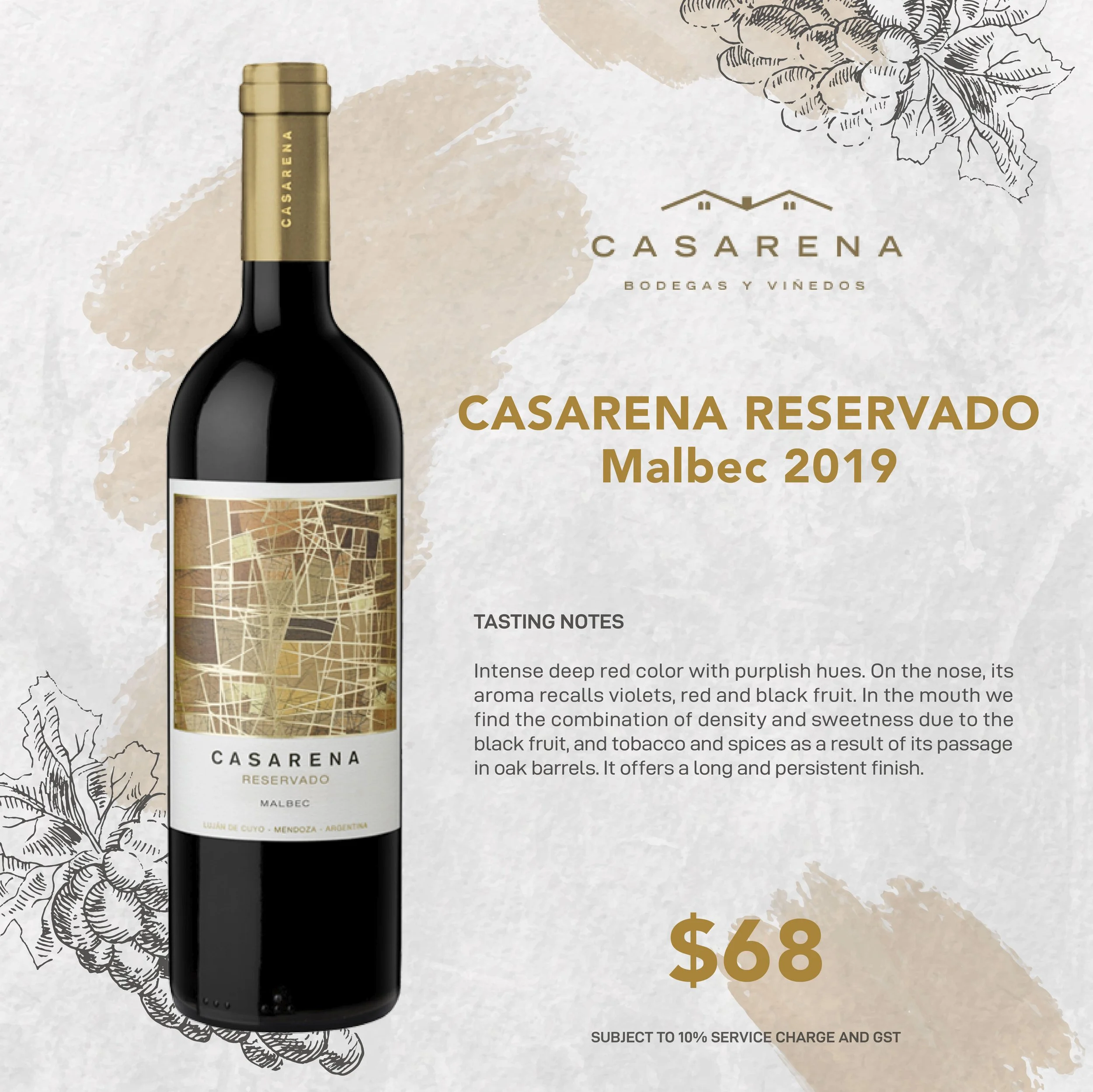 CASARENA RESERVADO Malbec 2019: $ 52.00 (U.P: $68.00++)