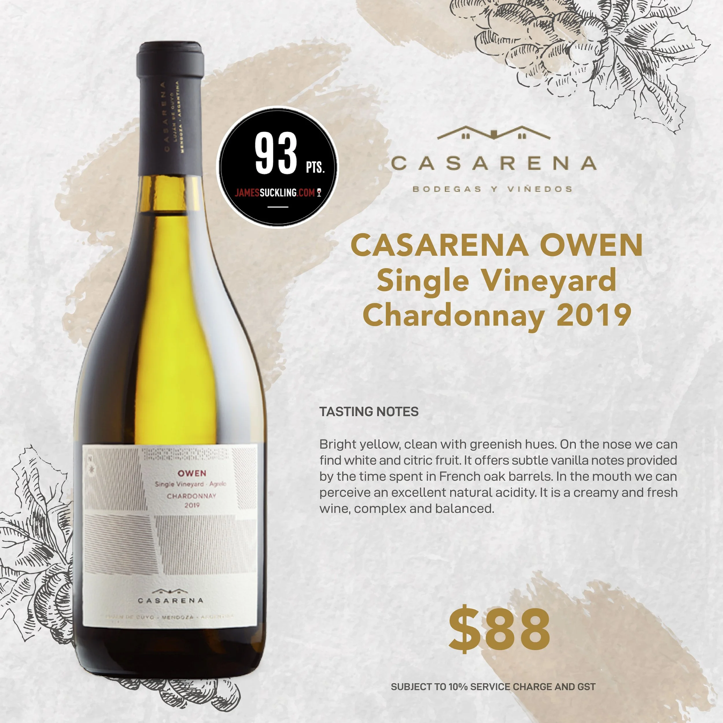 CASARENA OWEN Single Vineyard Chardonnay 2019: $ 68.00 (U.P: $88.00++)
