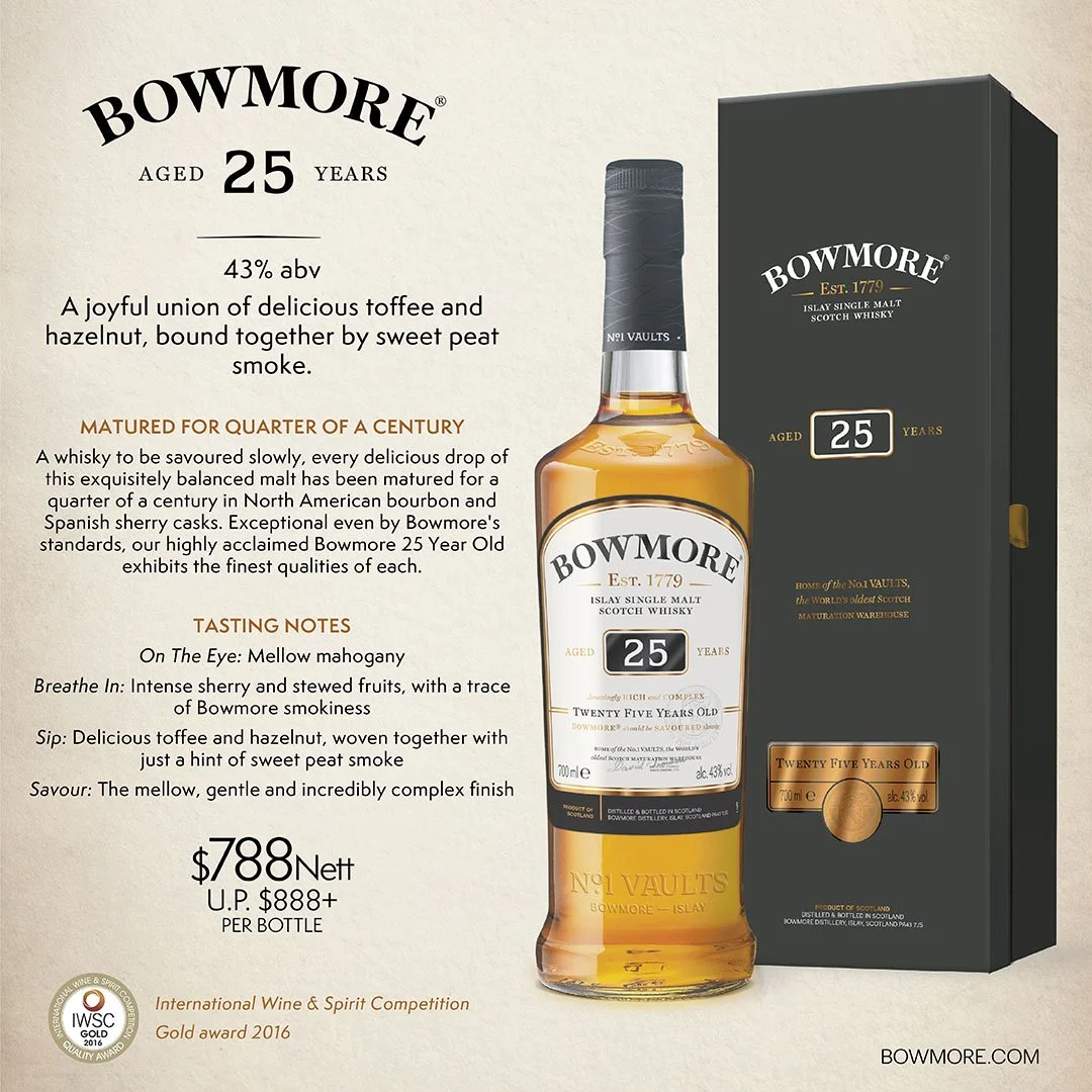 4. BOWMORE 25 YEAR OLD: $ 788.00 (U.P:$888.00++)