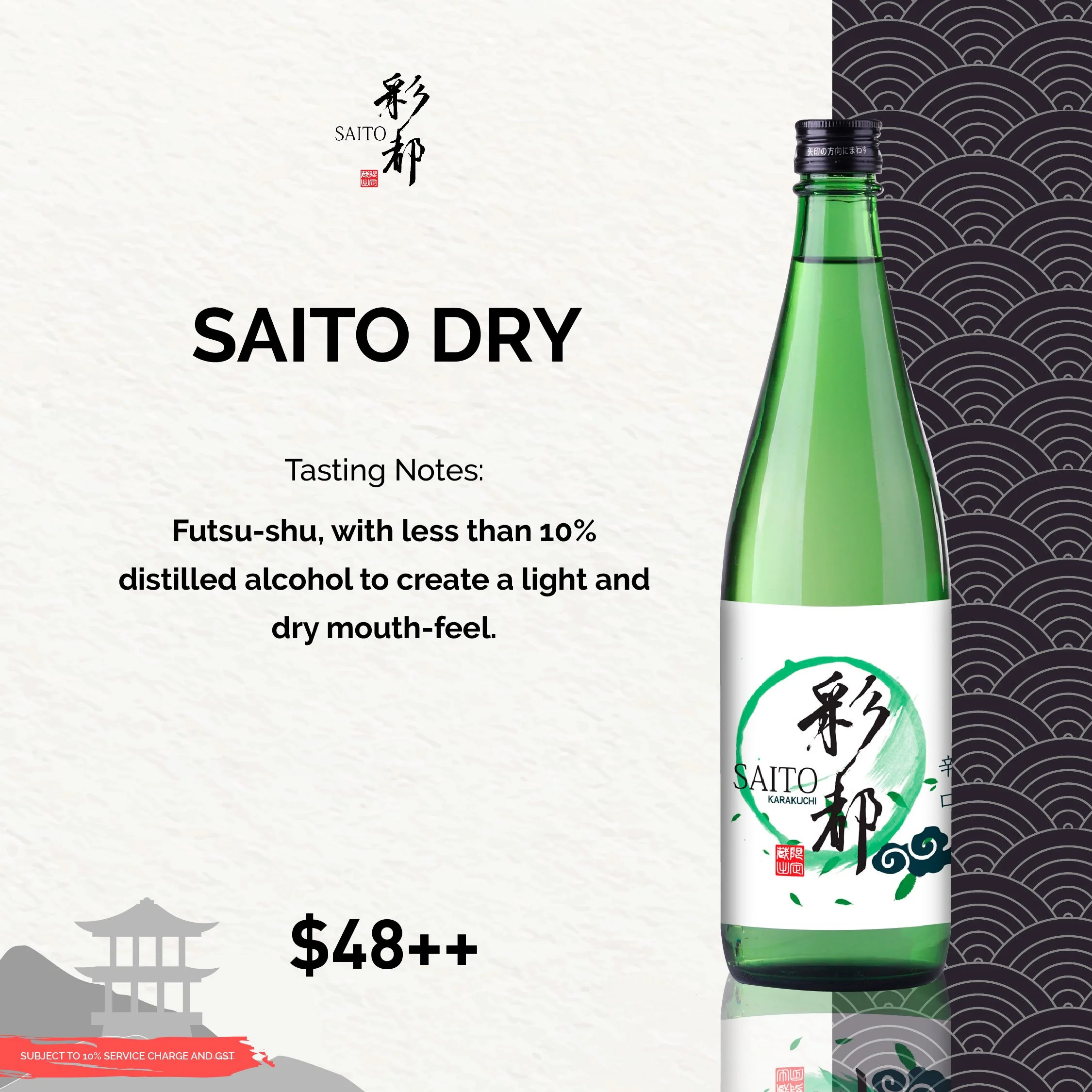 Saito Dry - Dry and delicate hint of acidic citrus notes, perfect with light seafood and fried dishes.