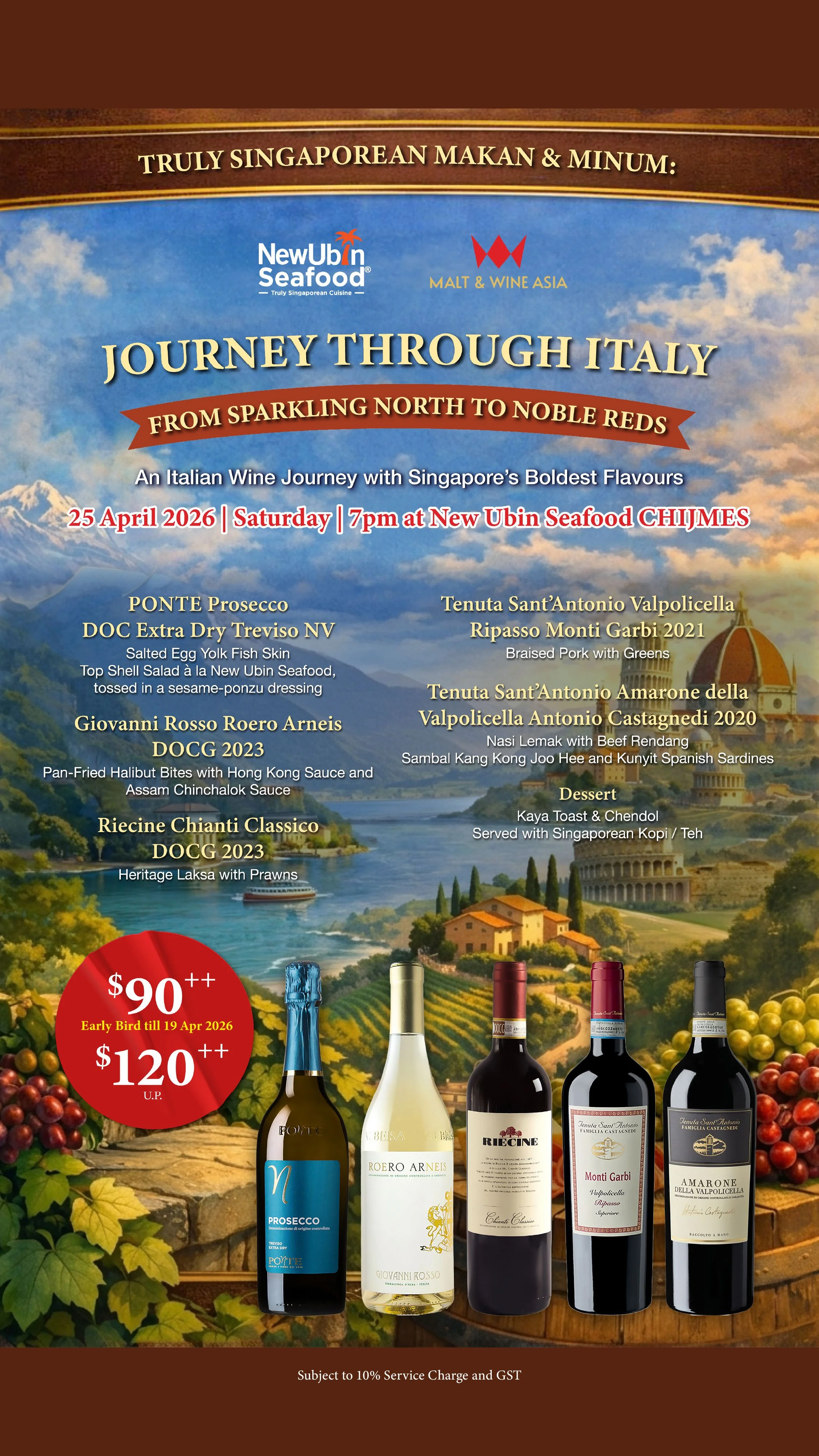 a curated wine pairing journey where refined Italian terroir meets the intensity of Singapore’s heritage cuisine.